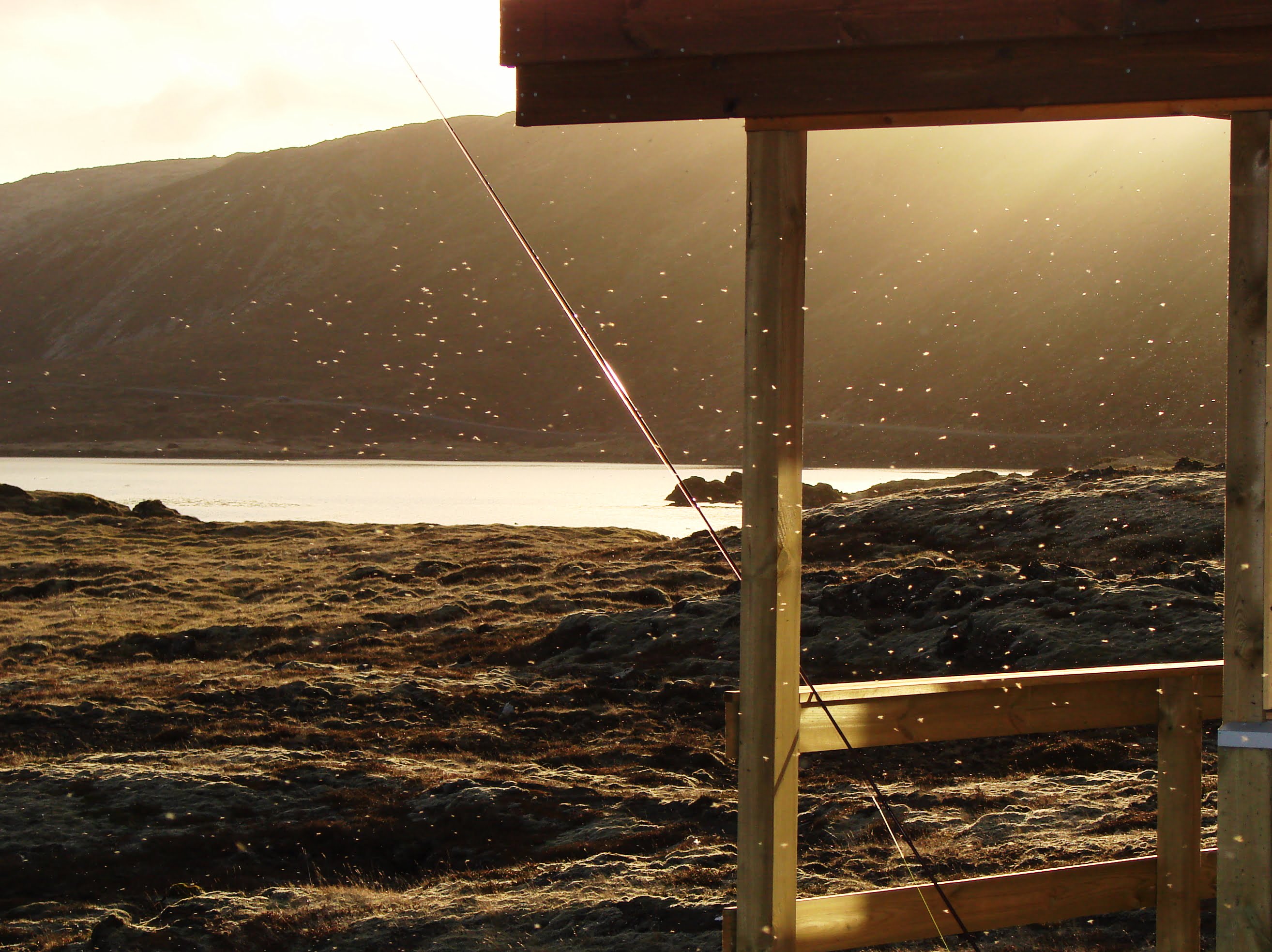 Þetta minnti ritstjóra óneitanlega á veiðitúr í Hlíðarvatn með Einari Fal ljósmyndara og blaðamanni. Við komum að kveldi og veiddum sína hvora bleikjuna, ca 2 punda fiska. Slægðum þær við aðgerðarskúr Ármanna og hengdum slorið á krók í lokuðum plastslöngum. Sátum síðan úti á verönd og supum smávegis af bjór áður en haldið var í koju. Úti á palli, uppi á stól, var skilinn eftir poki með þremur litlum bjórdósum. Að morgni dags var allt á tjá og tundri, pokinn kominn á gólfið, bjórslettur um allt. Ein dós tóm og önnur öll pjökkuð í sundur. Það var eitthvað undarlega skrollandi krunkið sem barst okkur. Og ekki var aðkoman geðslegri nema síður sé við aðgerðarskúrinn. Búið að ná slöngunni af króknum, rífa upp pokann og slor bókstaflega út um allt. Hreingerning stóð yfir í hart nær kortér