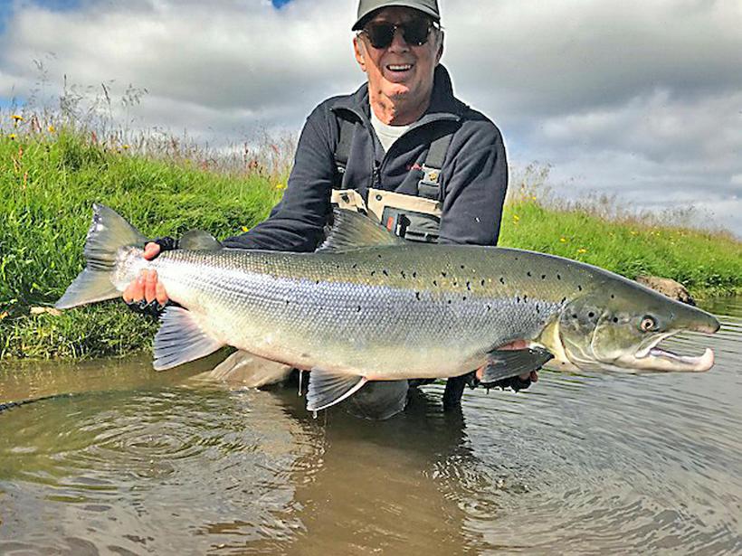 Eric Clapton með stórlaxinn, aðeins styttri en í fyrra, en samt risalax!