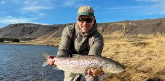 Clapton landaði laxinum í gær, föstudag, í Hnausastreng og flugan var Evening Dress númer 12. Hann var 40 mínútur að glíma við tröllið. Kvarðinn segir 25 ensk pund, 23 íslensk pund. Hvað sem menn vilja heyra og vita og gera….þá er þetta einn stærsti lax sumarsins. Þess má geta að Clapton veiddi einn 108 cm í fyrra…..