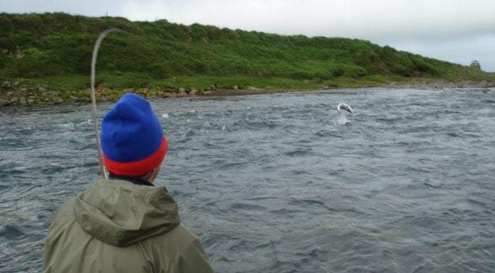 Á laugardag var aftaka slagveður vestast á Snæfellsnesi og áin „fór af stað“ eins og leigutakinn Ástþór Jóhansson orðaði það. Hún rauk upp í kakó og flóð á innan við klukkutíma og var svo gott sem óveiðandi allan laugardaginn.