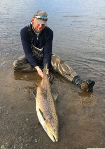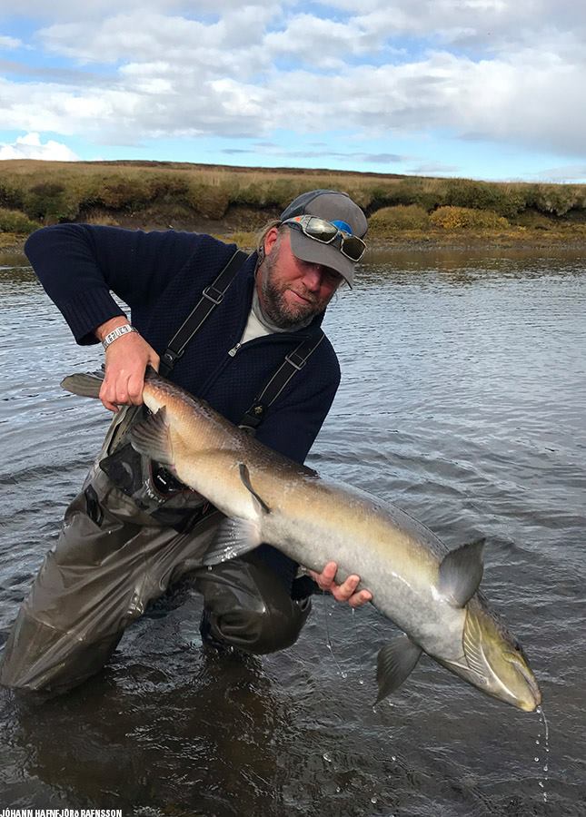 En fyrst þetta, upplýsingar sem voru að finna á frísvæðinu okkar: Stærri laxinn var hrygna sem tók fluguna Radian (heimasmíð Nils) í Harðeyrarstreng. Svona stórar hrygnur eru fágætar og er þyngd þeirra miðað við lengd mun meiri en hjá hængum vegna þess hversu þroskuð hrognin eru orðin. „Smærri“ laxinn veiddi Nils á sömu flugu í Dalsárósi.