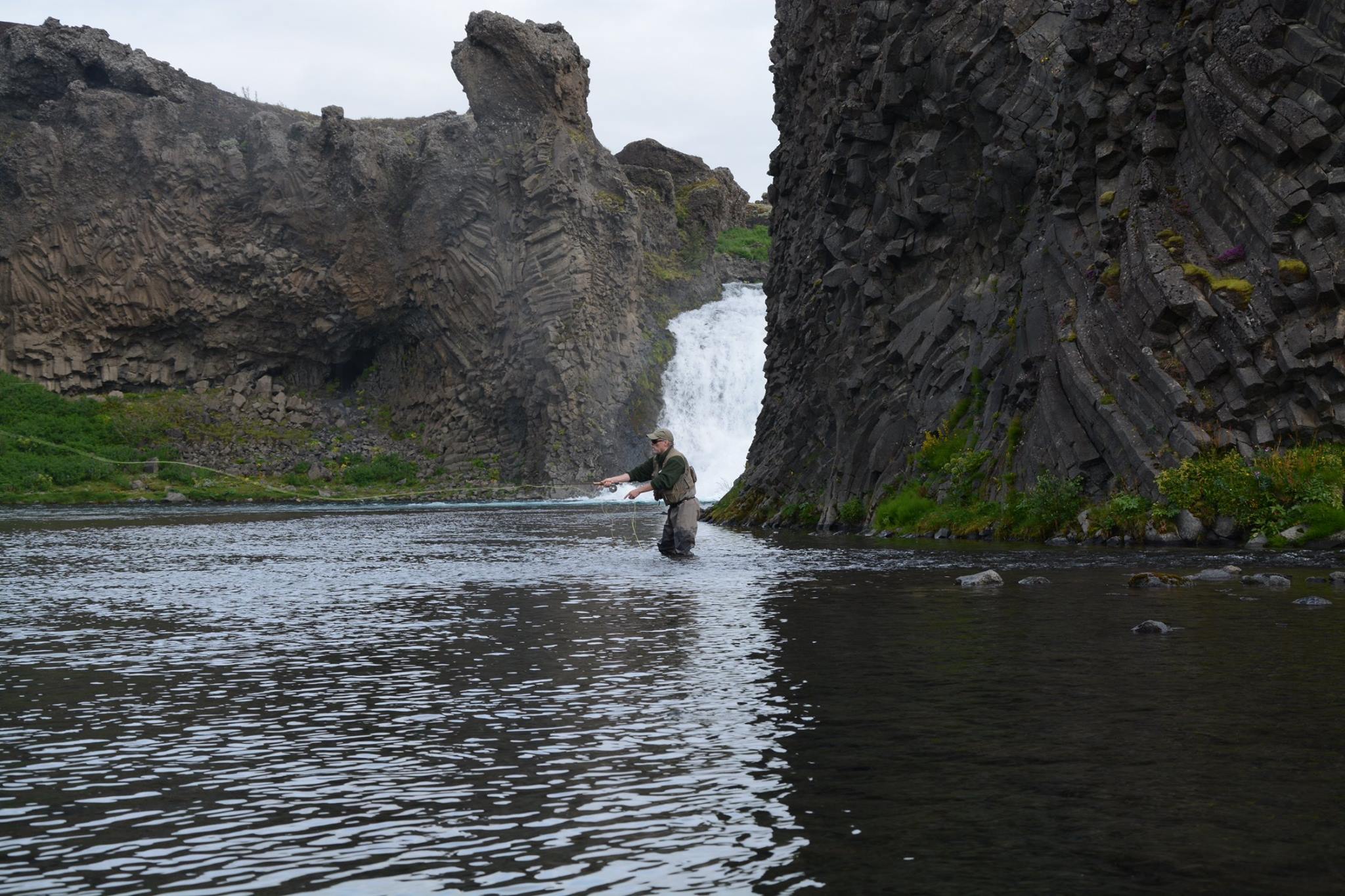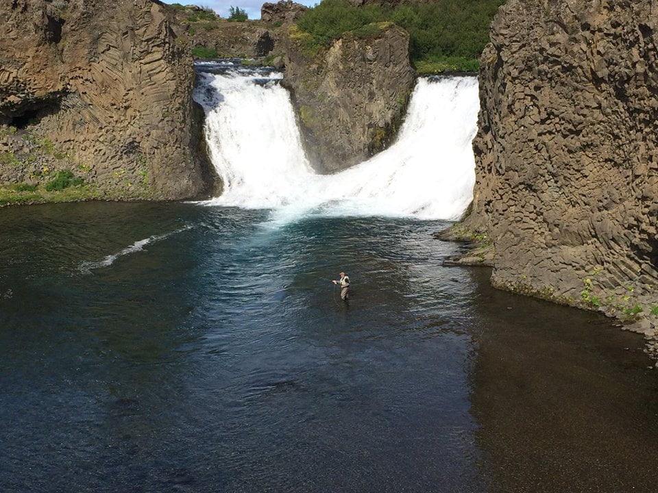 Það er mikið sjónarspil að veiða neðan við Háafoss.
