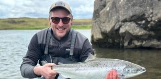 Vigfús sendi eftirfarandi skeyti: „Hér er svo hængurinn sem passar fyrir hrygnuna á Spegilflúðinni. En Lars fékk þennan 106 cm hæng í Fosspollinum í kvöld. Tók laxinn fluguna Wolfowitz. Fékk laxinn frelsi eftir myndartöku.“