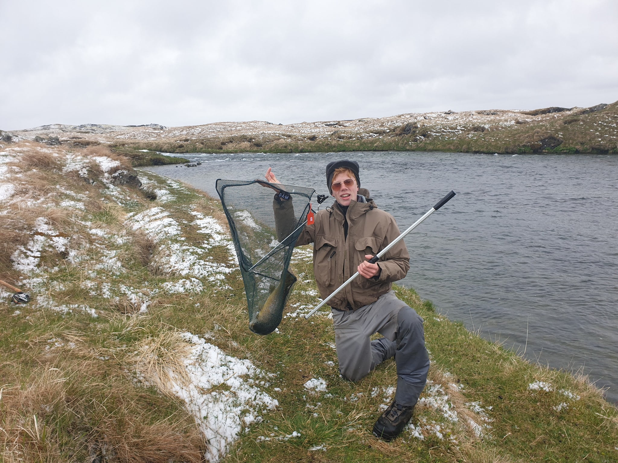 Innanum í aflanum voru fáeinar bleikjur, allar vænar líka og kom þessi góða veiði mönnum örlítið á óvart, því vetrarríki hefur ríkt á Norðausturlandi að undanförnu, fryst hefur á nóttum og jörð hvít eftir tíð él. Lofthiti var lítill í morgunsárið og fraus að sögn í lykkjum hjá sumum. En fiskur var við og vel heldinn, greinilega komið sumar ofan í ánni þó að það láti bíða eftir sér ofan vatns eins og sakir standa. Jón Helgi Björnsson á Laxamýri sagði í samtali í gær, að tíðin hefði verið svo góð í allt vor að ekki væri verjandi að kvarta undan smá kuldakasti nú.