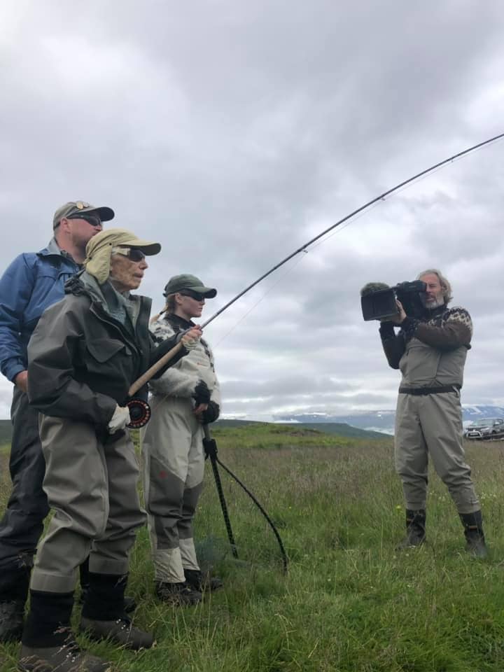 Sporðaköst eru að taka upp þátt um Lillu Rocliffe og hér er hún að standa sig í fyrirsætuhlutverkinu, búin að setja í stórlax!