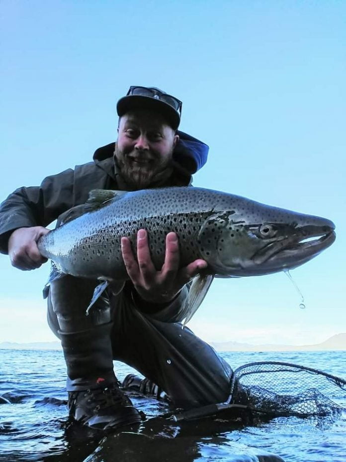 Ólafur Tómas Guðbjartsson með glæsilegan sjóbirting úr Hópinu.