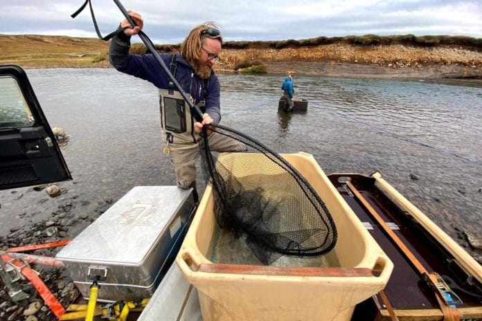 Sveinn Björnsson hjá Six Rivers við merkingar í Selá. Myndin er fengin frá Six Rivers Iceland.