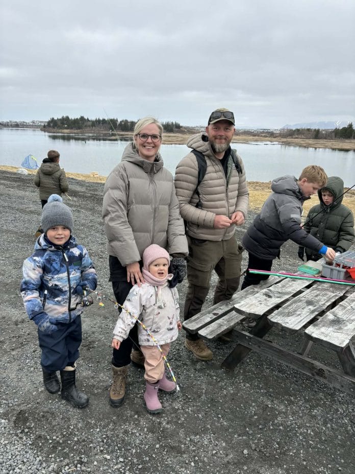 Margir tóku daginn snemma, en það var hrollkalt í morgunsárið, aðeins 4-5 stiga hiti og nokkur gola sem kældi enn frekar. En svo hýnaði þegar leið á morguninn og kom inn í daginn. Menn voru að setja í fiska, nær eingöngu urriða sem hefur nú um nokkurt árabil verið aðalfiskurinn í vatninu. Mikið þar af fallegum 1-2 punda fiskum og stöku stærri fiski í bland. Það voru þeir hörðustu sem mættu eldsnemma en svo tíndist vaxandi fjöldi þegar leið á morguninn og daginn, ekki hvað síst ungviðið og fyrir utan að veiða með pabba og mömmu var heil dagskrá fyrir krakkana.